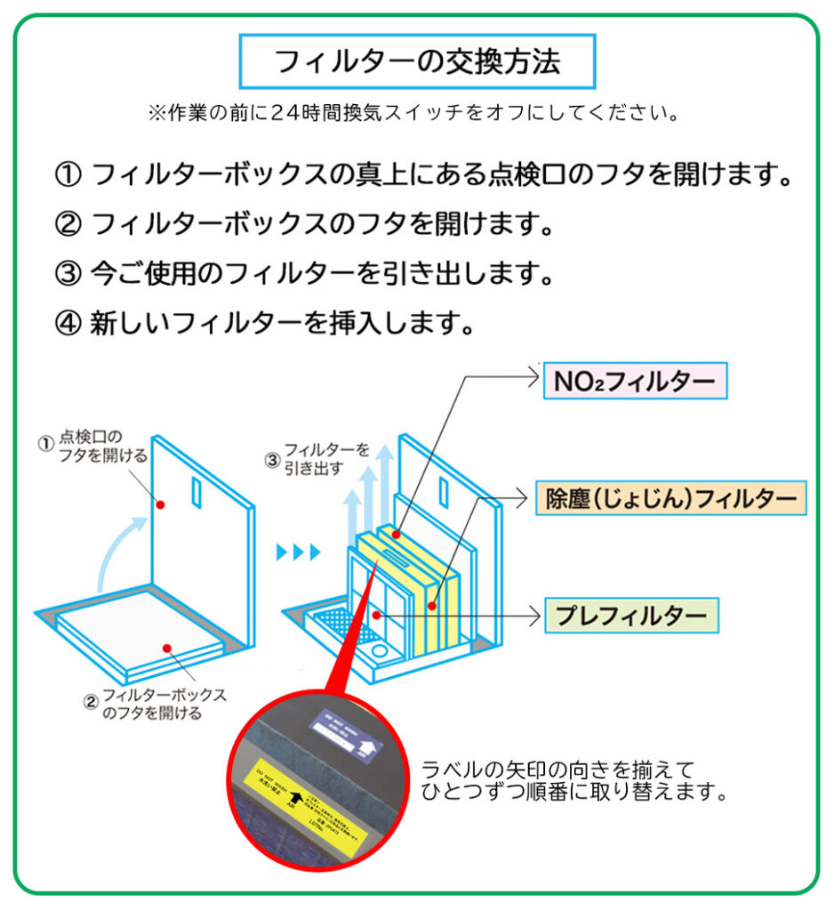 第一種換気システムは、外気を取り込んで三層のフィルターで空気を綺麗にして室内に給気します。